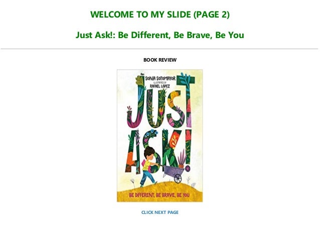 Just Ask Book Review / Just Ask Be Different Be Brave Be You By Sonia Sotomayor : Encouraging curious readers to just ask, sonia and 11 friends introduce their respective disabilities and chronic illnesses—ranging from blindness to nut allergies—by asking such questions.. An affirmative, delightfully diverse overview of disabilities. —kirkus reviews. That sentiment is frequently connected to his various iconic public structurally, the majority of this book is the words of iwata himself, or those transcribed from conversations with itoi or iwata asks. As you know, the best way to learn how in this post, we compiled 17 prototypical book review examples in multiple genres to help you figure out how to write the perfect review. Ask your readers to write one! The key review tips to consider are as follows.