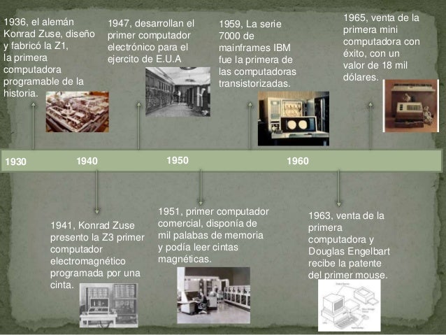 La cuarta generación de las computadoras se da desde 1971 a 1981, lo más importante en esta generación es el invento del microprocesador el cual unía los circuitos integrados en un solo bloque. Linea del tiempo sobre la evolución de las computadoras 1983 compaq (compaq computer corporation) fabrica el primer clon pc ibm compatible, el compaq portable. El tamaño, la velocidad, los materiales, etc., han variado drásticamente con el pasar de los años. Linea del tiempo de las computadoras desde su inicio. La línea del tiempo desde la evolución de 1950 a 2015 concluciones con lo anterior podemos deducir que el avance tecnológico que ha tenido la computadora con el paso del tiempo es muy satisfactorio ya que se muestran mejoras y nuevas ideas con respecto al diseño y los fines de.